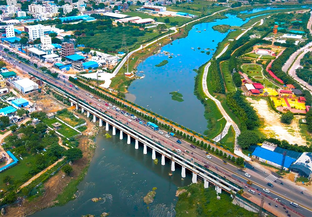 Central to becoming the Bluest City, the Musi River — Hyderabad’s historic lifeline — will be fully restored across its 55-km stretch, flowing cleanly through the heart of the city once again.
