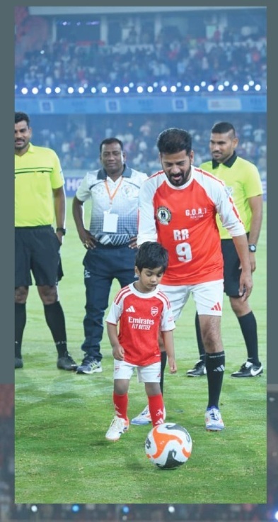 Football, unlike politics, is unforgiving. It exposes fatigue. It reveals imbalance. It does not negotiate with age. Yet, as the game unfolded, the Chief Minister kept pace with players half his age – tracking back, pressing forward, calling for the ball, releasing it cleanly. No drama. No sensation. Just work. That he scored 2 goals was an added bonus to the already excited Hyderabadi crowd who